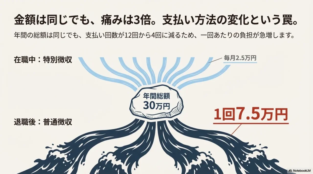 これこそが、多くの退職者をパニックに陥れる「住民税ショック」の正体です。